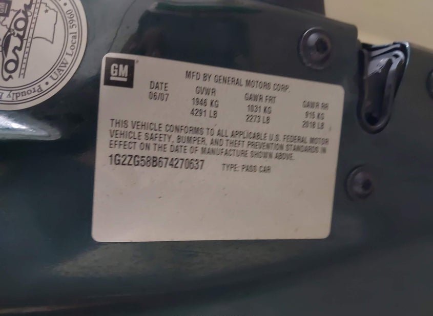 - VIN: 1G2ZG58B674270637
