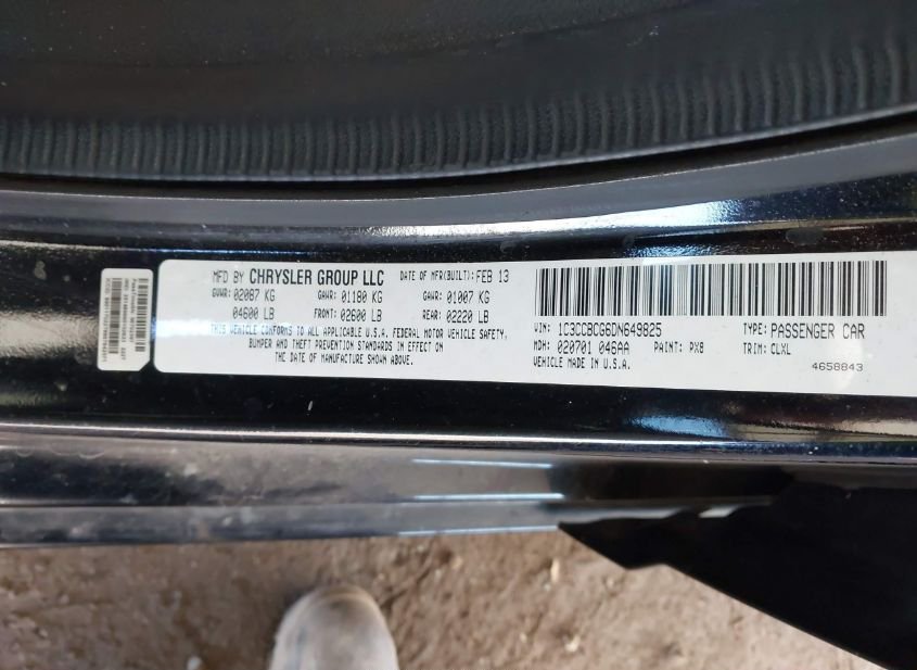 - VIN: 1C3CCBCG6DN649825