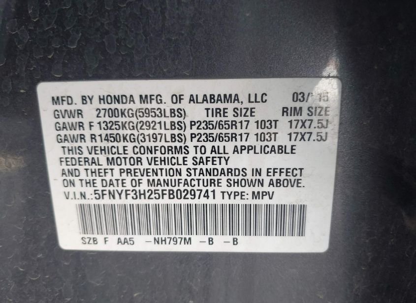 - VIN: 5FNYF3H25FB029741