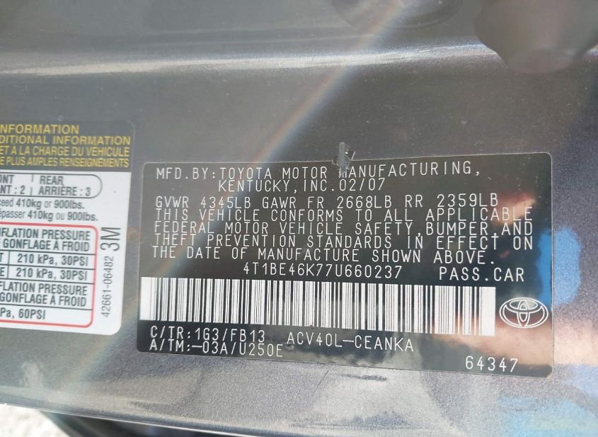 - VIN: 4T1BE46K77U660237
