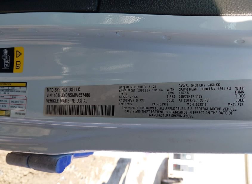 - VIN: 1C4HJXDN5MW657460