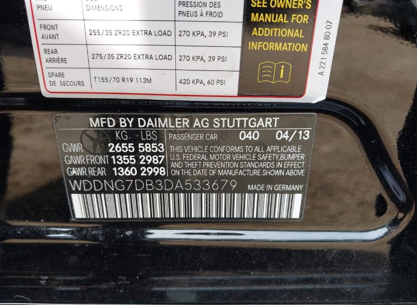 - VIN: WDDNG7DB3DA533679