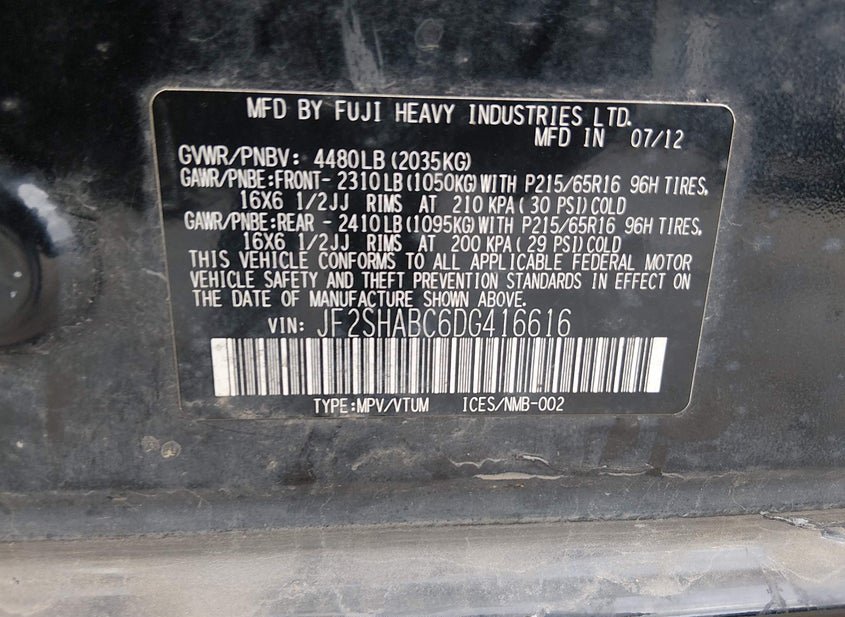 - VIN: JF2SHABC6DG416616