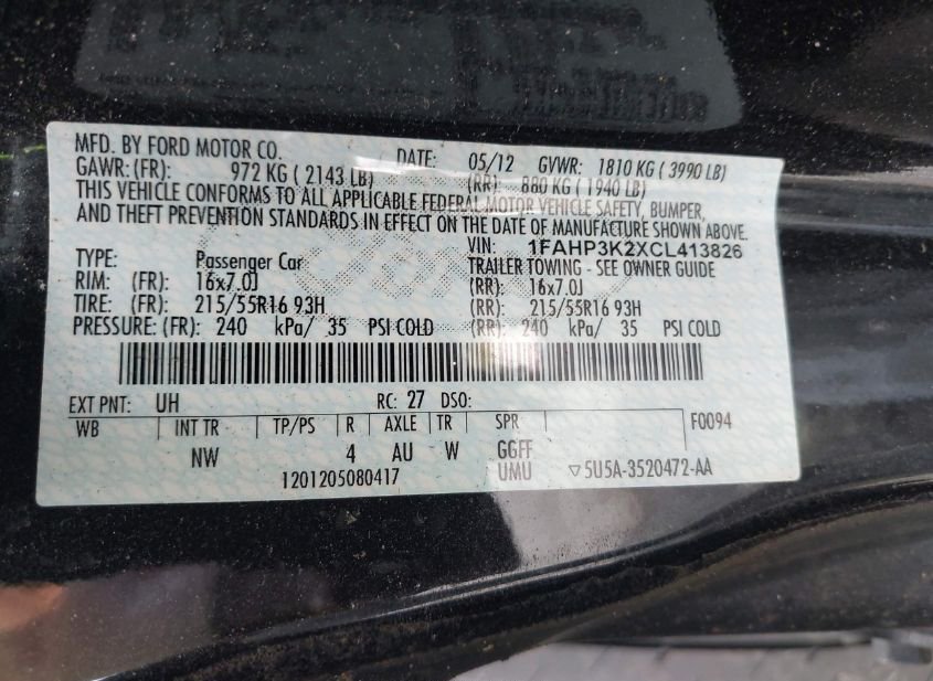- VIN: 1FAHP3K2XCL413826