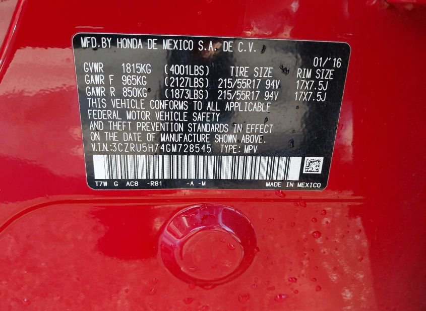 - VIN: 3CZRU5H74GM728545