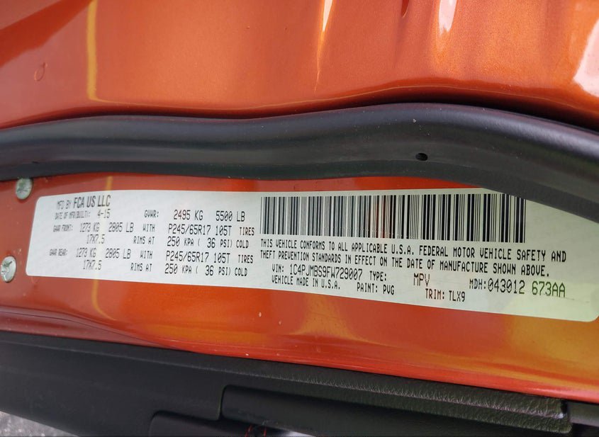 - VIN: 1C4PJMBS9FW729007