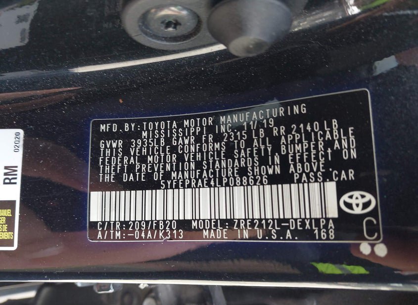 - VIN: 5YFEPRAE4LP088626