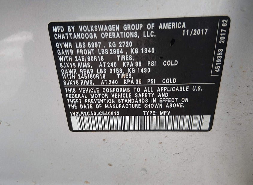 - VIN: 1V2LR2CA0JC540613