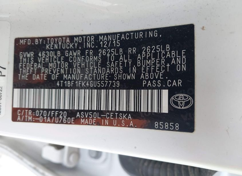 - VIN: 4T1BF1FK4GU557739