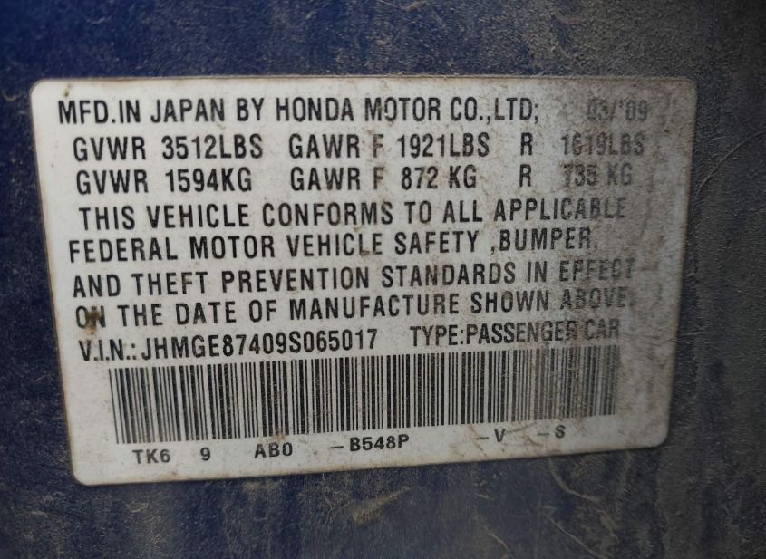 - VIN: JHMGE87409S065017