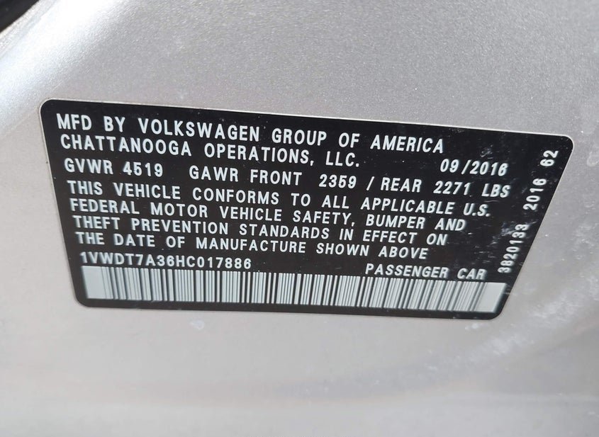 - VIN: 1VWDT7A36HC017886