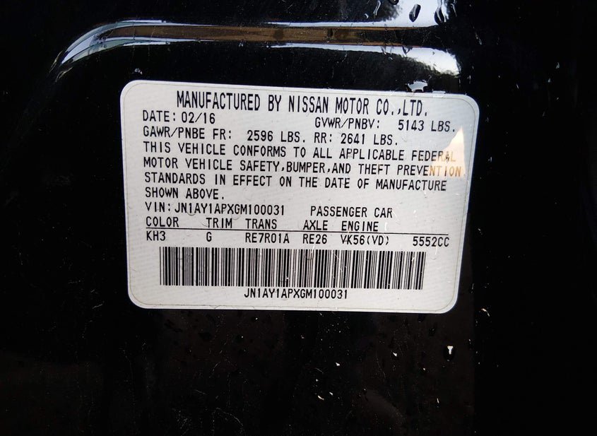 - VIN: JN1AY1APXGM100031