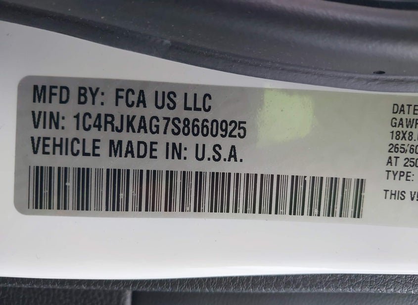 - VIN: 1C4RJKAG7S8660925