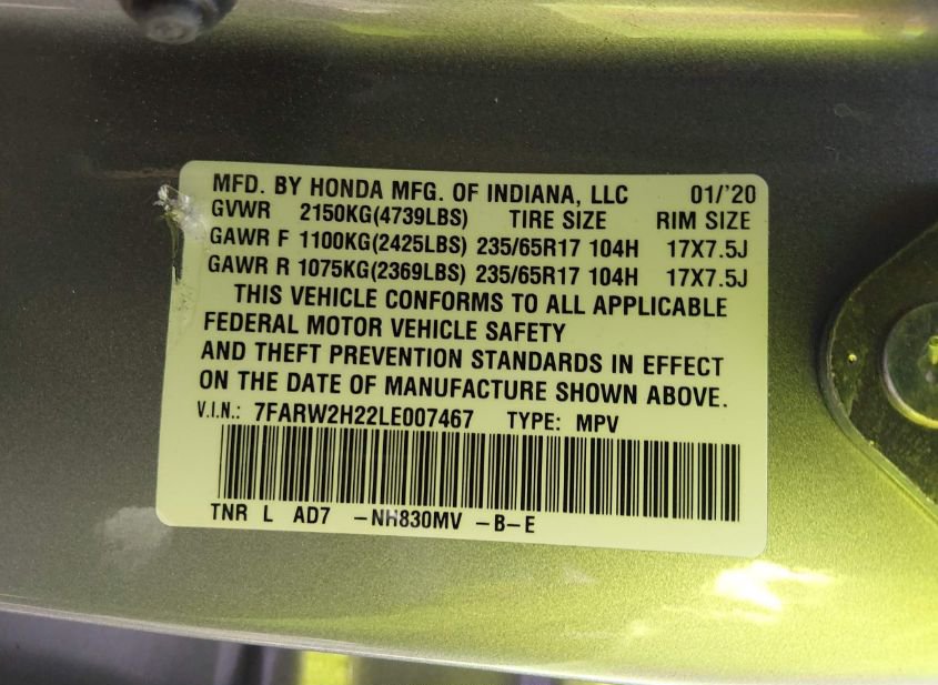 - Название лота: 2020 HONDA CR-V AWD LX