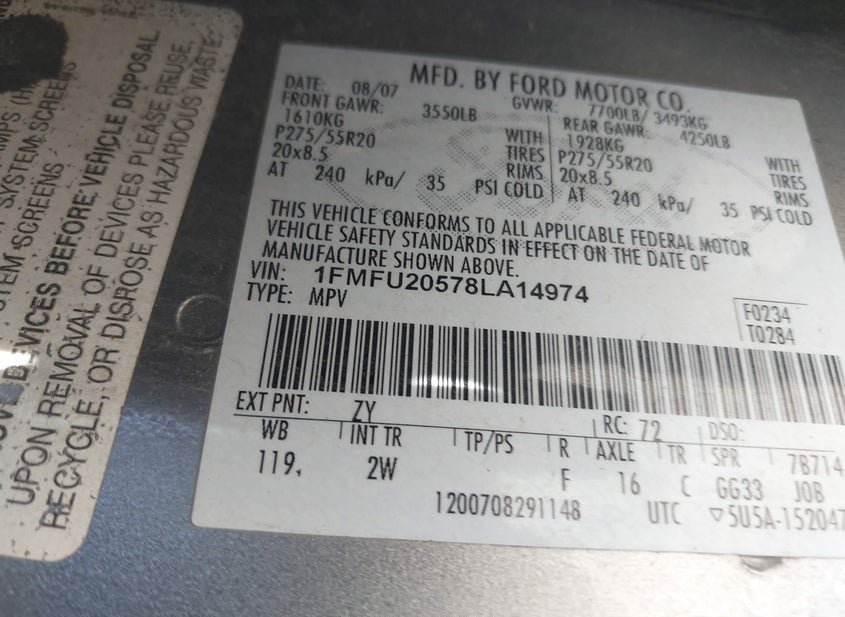 - VIN: 1FMFU20578LA14974