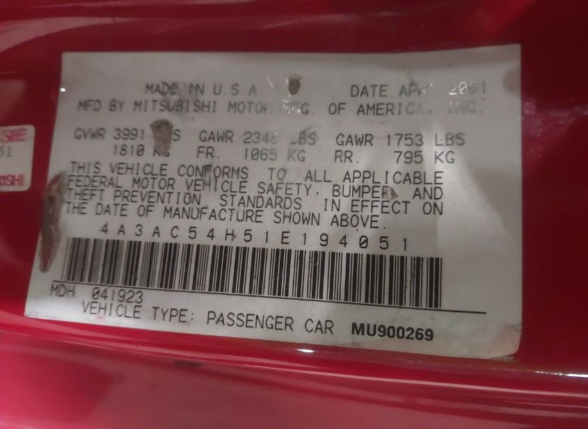 - VIN: 4A3AC54H51E194051