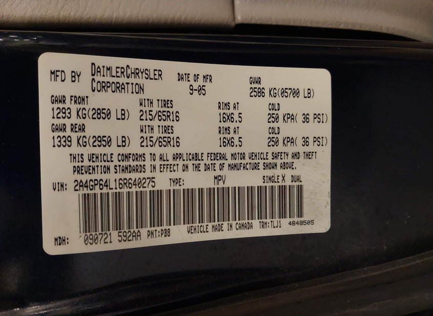 - VIN: 2A4GP64L16R640275