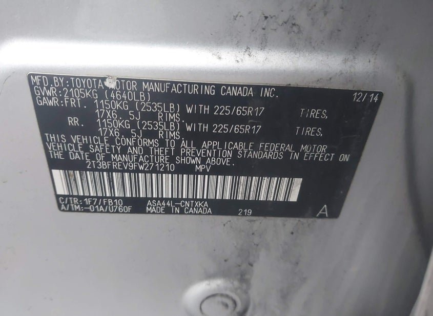 - VIN: 2T3BFREV9FW271210