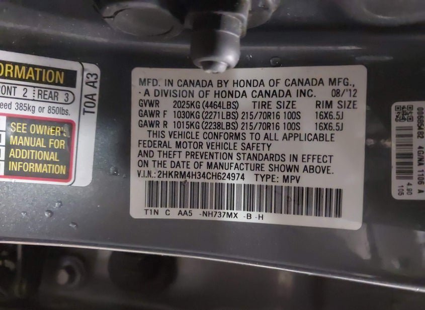- VIN: 2HKRM4H34CH624974