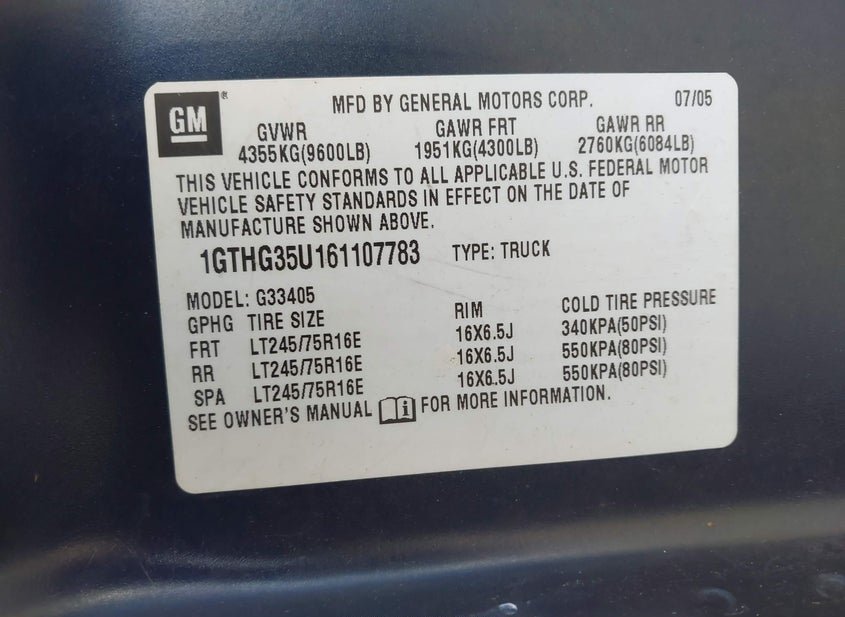 - VIN: 1GTHG35U161107783