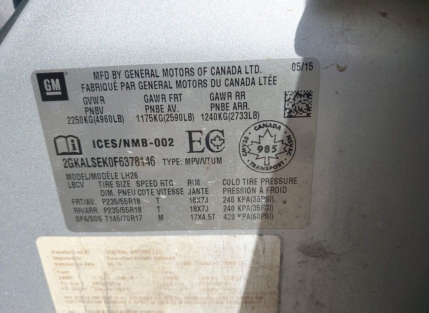 - VIN: 2GKALSEK0F6378146