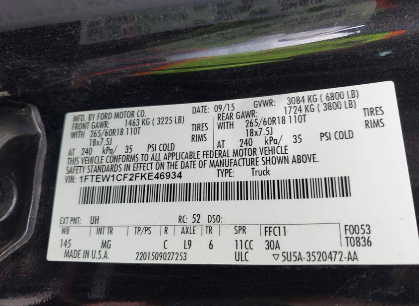 - VIN: 1FTEW1CF2FKE46934