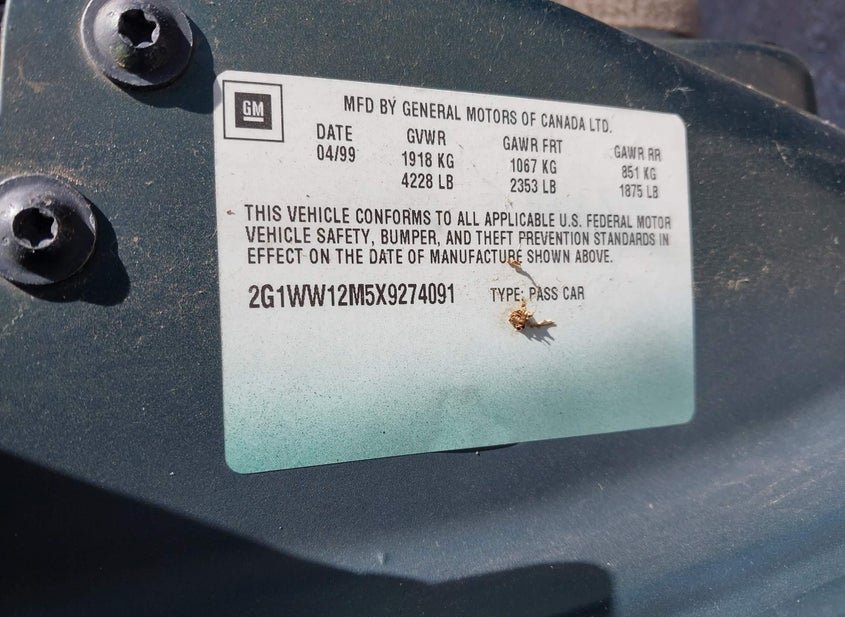 - VIN: 2G1WW12M5X9274091