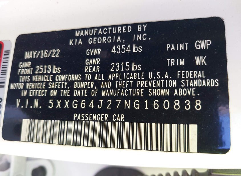 - VIN: 5XXG64J27NG160838