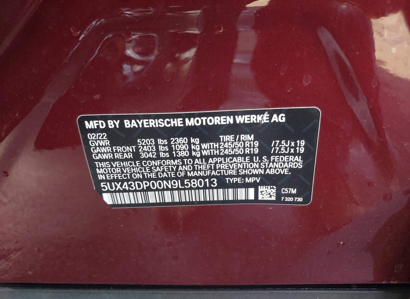 - VIN: 5UX43DP00N9L58013