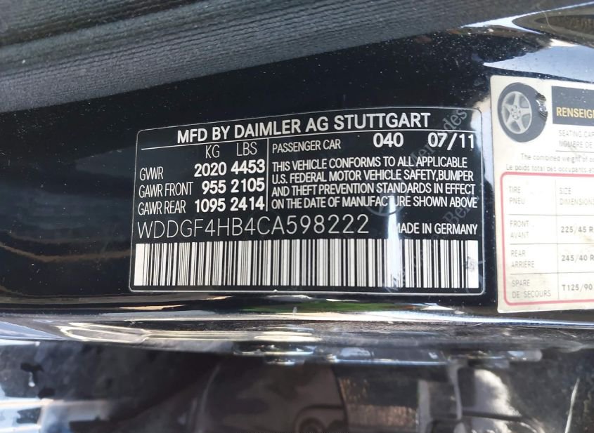 - VIN: WDDGF4HB4CA598222