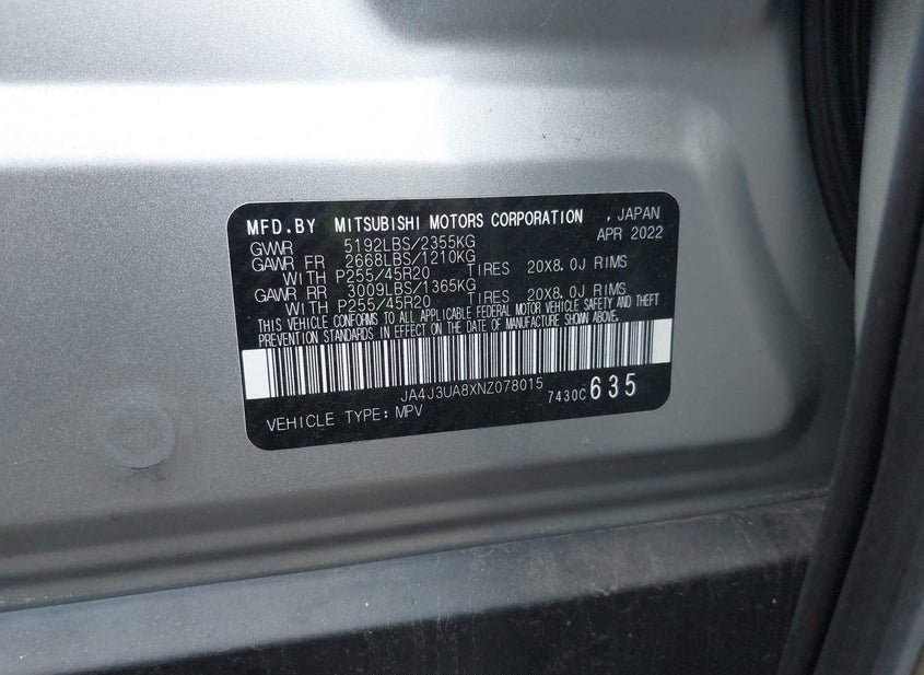 - VIN: JA4J3UA8XNZ078015