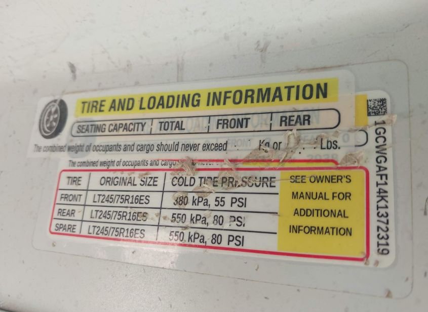 - VIN: 1GCWGAF14K1372319