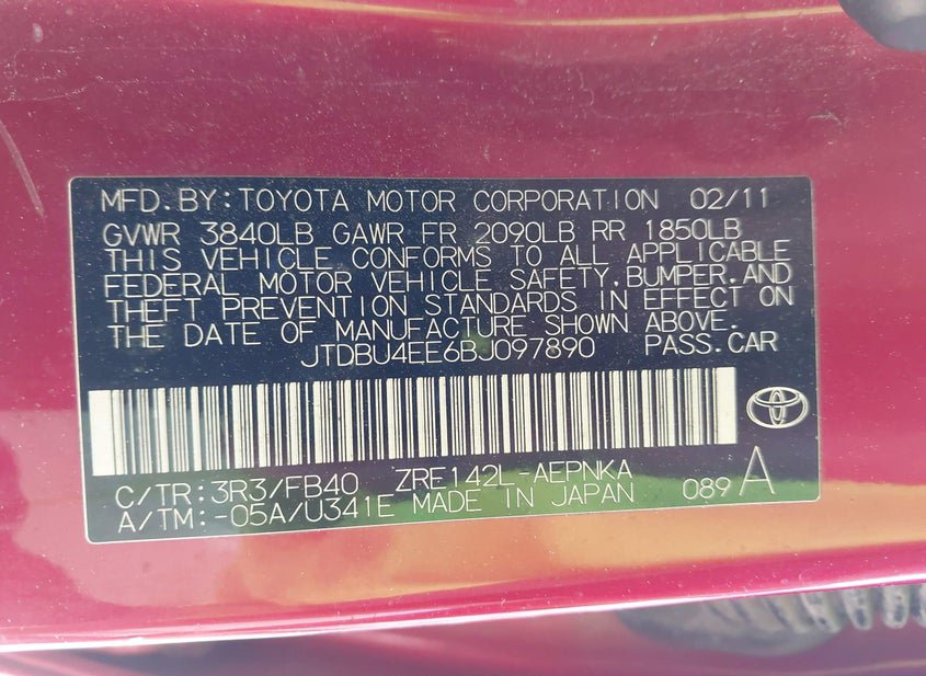 - VIN: JTDBU4EE6BJ097890