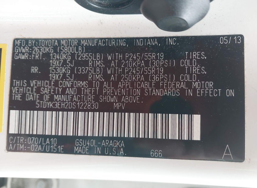 - VIN: 5TDYK3EH2DS122830