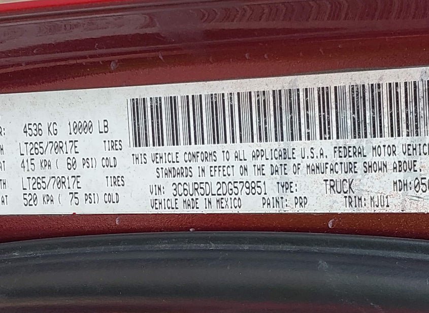 - VIN: 3C6UR5DL2DG579851