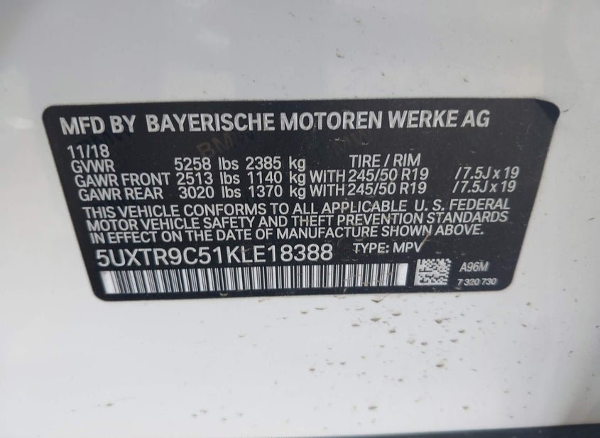 - VIN: 5UXTR9C51KLE18388