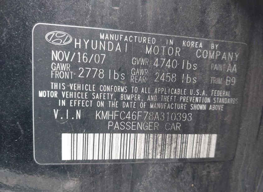 - VIN: KMHFC46F78A310393