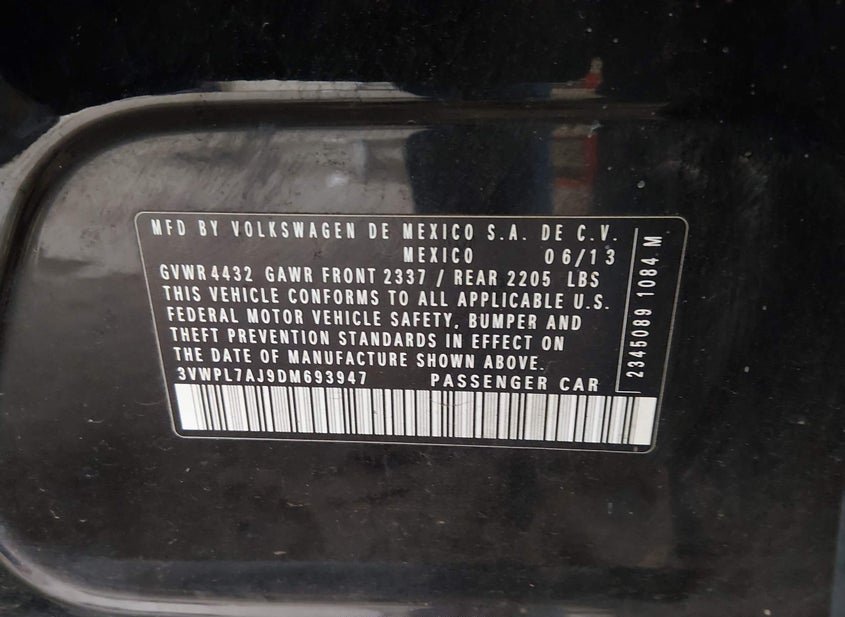 - VIN: 3VWPL7AJ9DM693947