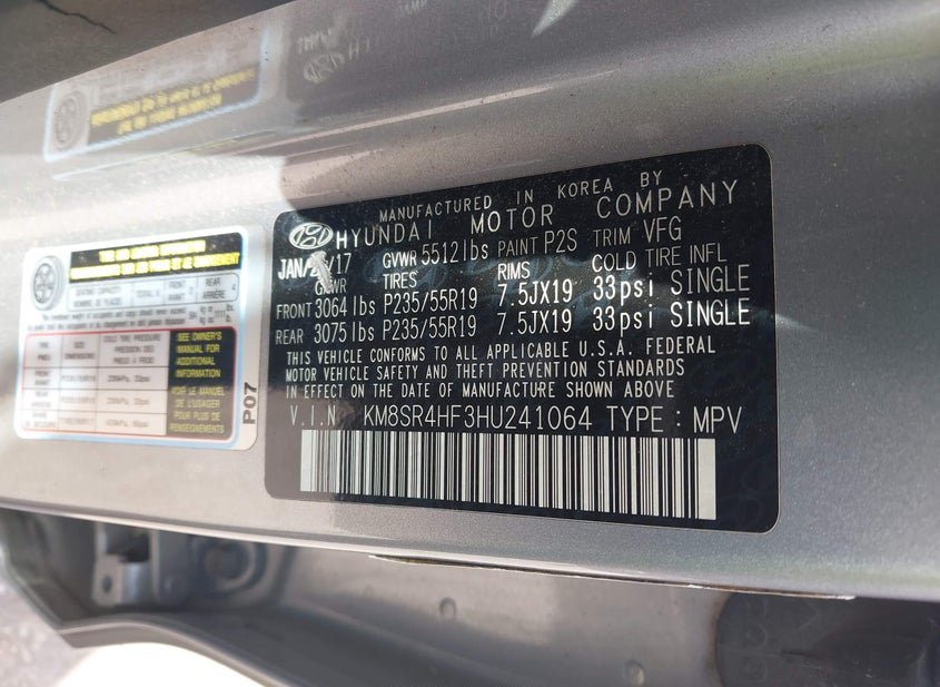 - VIN: KM8SR4HF3HU241064