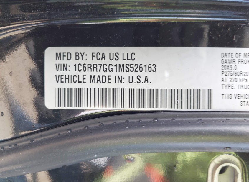 - VIN: 1C6RR7GG1MS526163