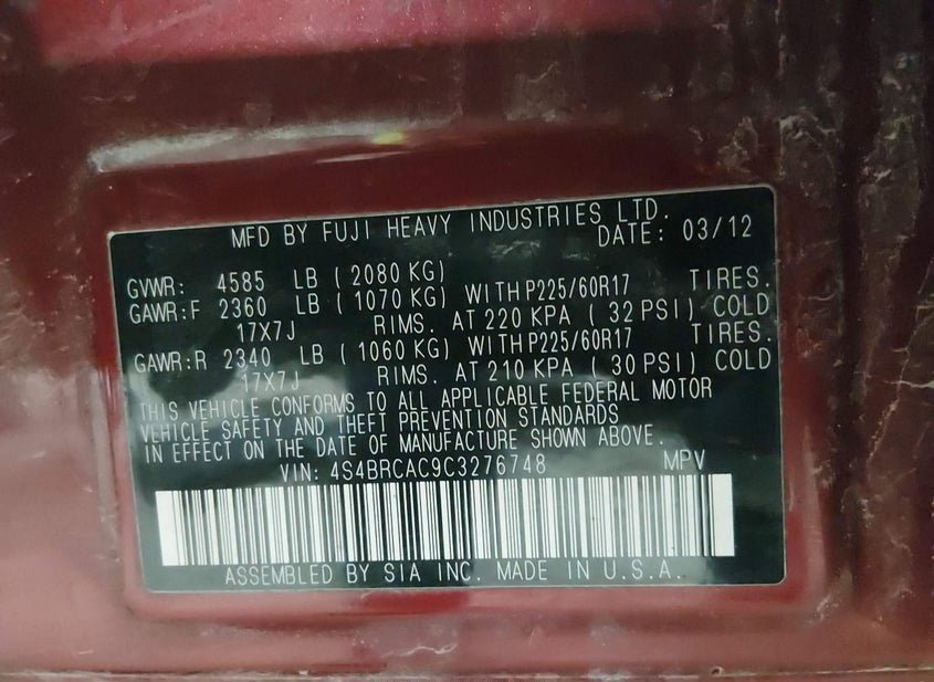 - VIN: 4S4BRCAC9C3276748