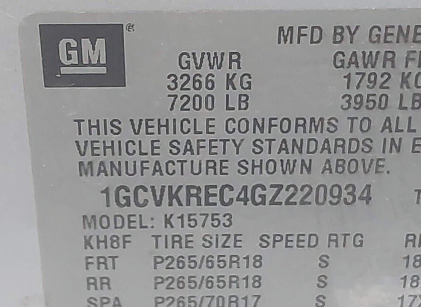 - VIN: 1GCVKREC4GZ220934