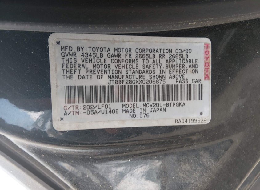 - VIN: JT8BF28GXX0206875