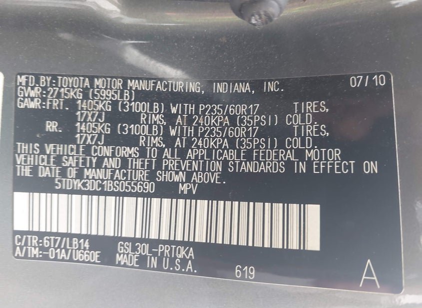 - VIN: 5TDYK3DC1BS055690