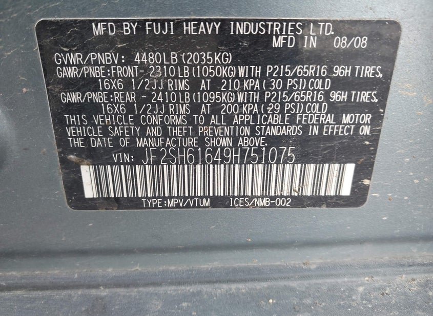- VIN: JF2SH61649H751075