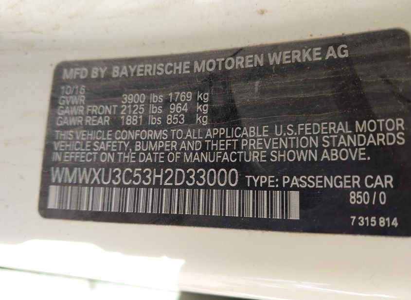 - VIN: WMWXU3C53H2D33000