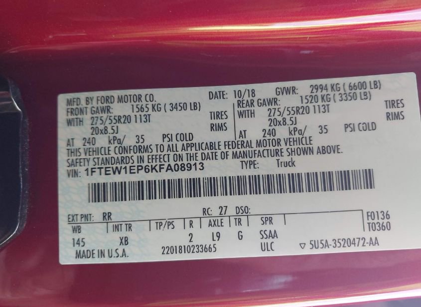 - VIN: 1FTEW1EP6KFA08913
