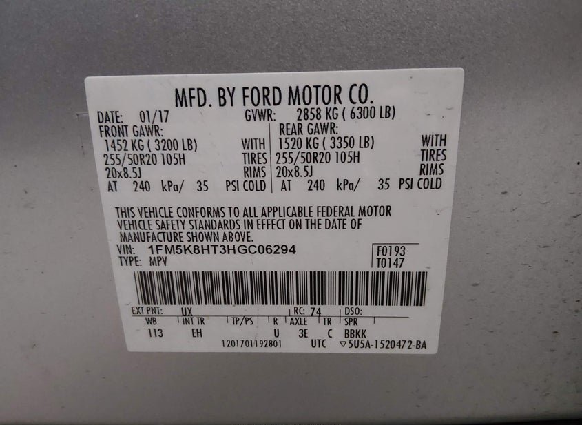 - VIN: 1FM5K8HT3HGC06294