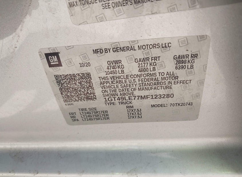 - VIN: 1GT49LE77MF123280