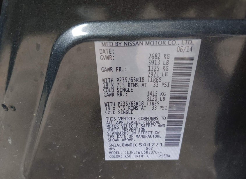 - VIN: 5N1AL0MM0EC544721